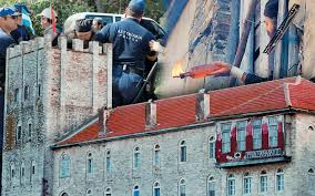 Σήμερα μία «θράκα» μοναχών που εδώ και 40 χρόνια αρνούνται να εγκαταλείψουν τη Μονή Εσφιγμένου φτάνουν σε σημείο – σύμφωνα με τις μαρτυρίες – να εκτοξεύσουν ακόμη και βόμβες – μολότοφ, προκειμένου να προστατέψουν το κονάκι τους στις Καρυές του Αγίου Ορους. Το μαύρο λάβαρο που είχαν σηκώσει το 1974 και έγραφε «Ορθοδοξία ή Θάνατος» ξαναβγαίνει και οι 87 ζηλωτές μοναχοί που παραμένουν «ταμπουρωμένοι» στο μοναστήρι δηλώνουν αποφασισμένοι να υπερασπιστούν την πίστη τους με κάθε τρόπο. Η ατμόσφαιρα κυριολεκτικά μυρίζει «μπαρούτι» και οι εικόνες με τις αστυνομικές δυνάμεις να «πολιορκούν» τους ρασοφόρους μοναχούς ξενίζουν και παράλληλα προσελκύουν διεθνές ενδιαφέρον.
