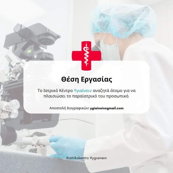 Εάν ενδιαφέρεστε, παρακαλούμε όπως αποστείλετε το βιογραφικό σας στο παρακάτω 📧 email: ygiainein@gmail.com