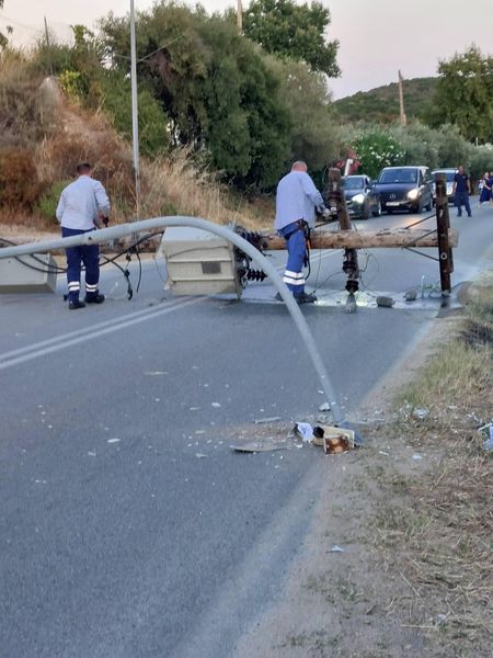 Πτώση στύλου της ΔΕΗ. Η κυκλοφορία διεξάγεται από παράκαμψη επι τόπου με ιδιαίτερη δυσκολία.