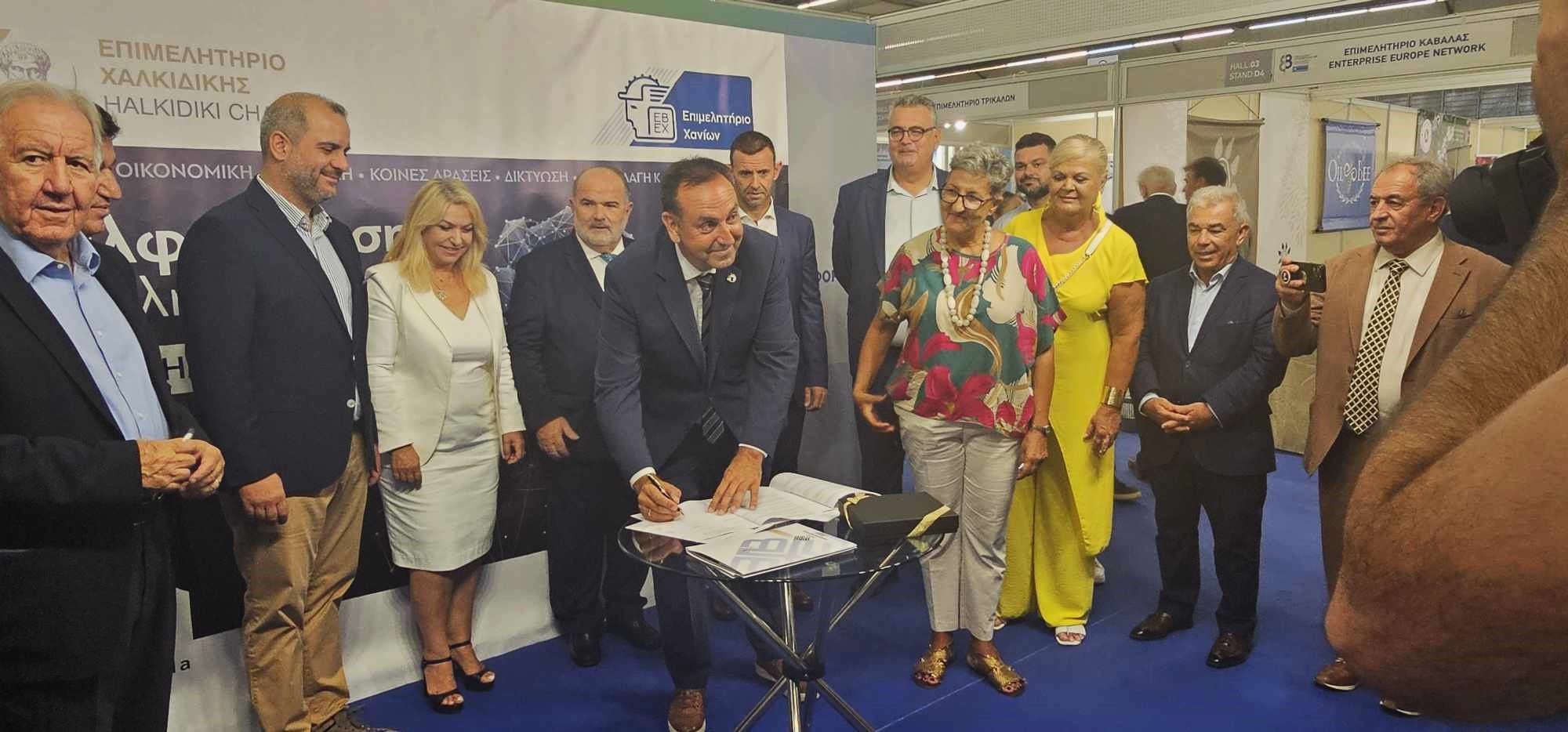 Μια γόνιμη και με πολλές προοπτικές συνεργασία επισφραγίστηκε την Κυριακή 8 Σεπτεμβρίου, στο πλαίσιο της 88ης ΔΕΘ, με την υπογραφή του Συμφώνου Αδελφοποίησης μεταξύ των Επιμελητηρίων Χαλκιδικής και Επιμελητηρίου Χανίων.