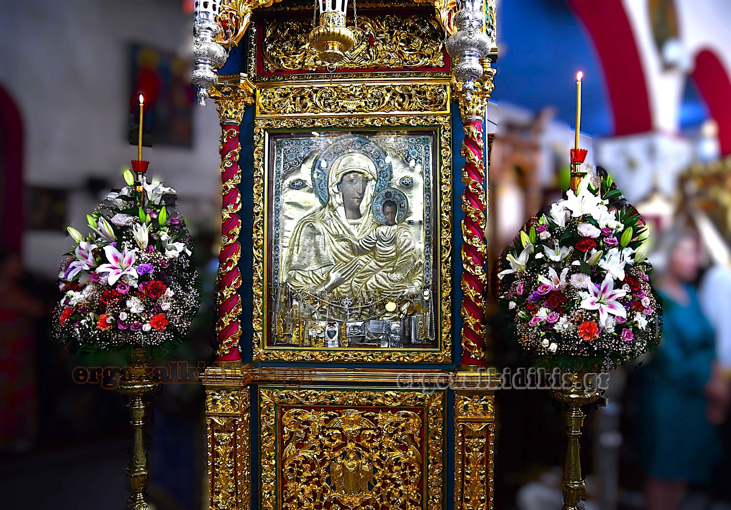 Τό επίχρυσον ένδυμα τής εικόνος είναι αυτή η δωρεά τής οικονενείας Νικολάου καί Μαίρης Σαββίδου.