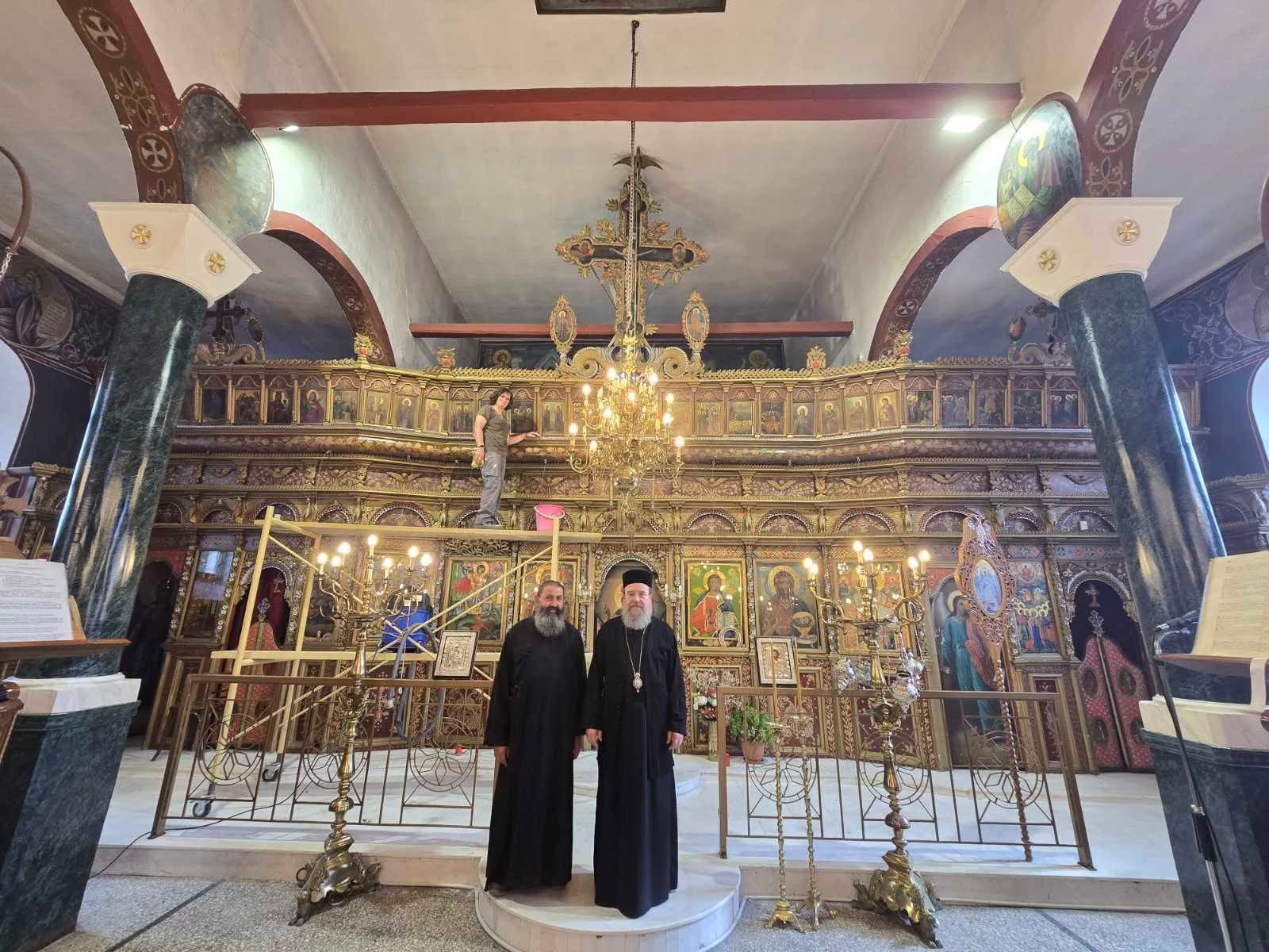 Να σημειωθεί ότι ο Σεβασμιώτατος βρήκε τον Κληρικό του με ράσα εργασίας και την Πρεσβυτέρα με ρούχα δουλειάς να ευρεπίζουν το τέμπλο και το δάπεδο του Ναού από τα κατάλοιπα που προξένησε η πρόσθεν παρέμβαση…