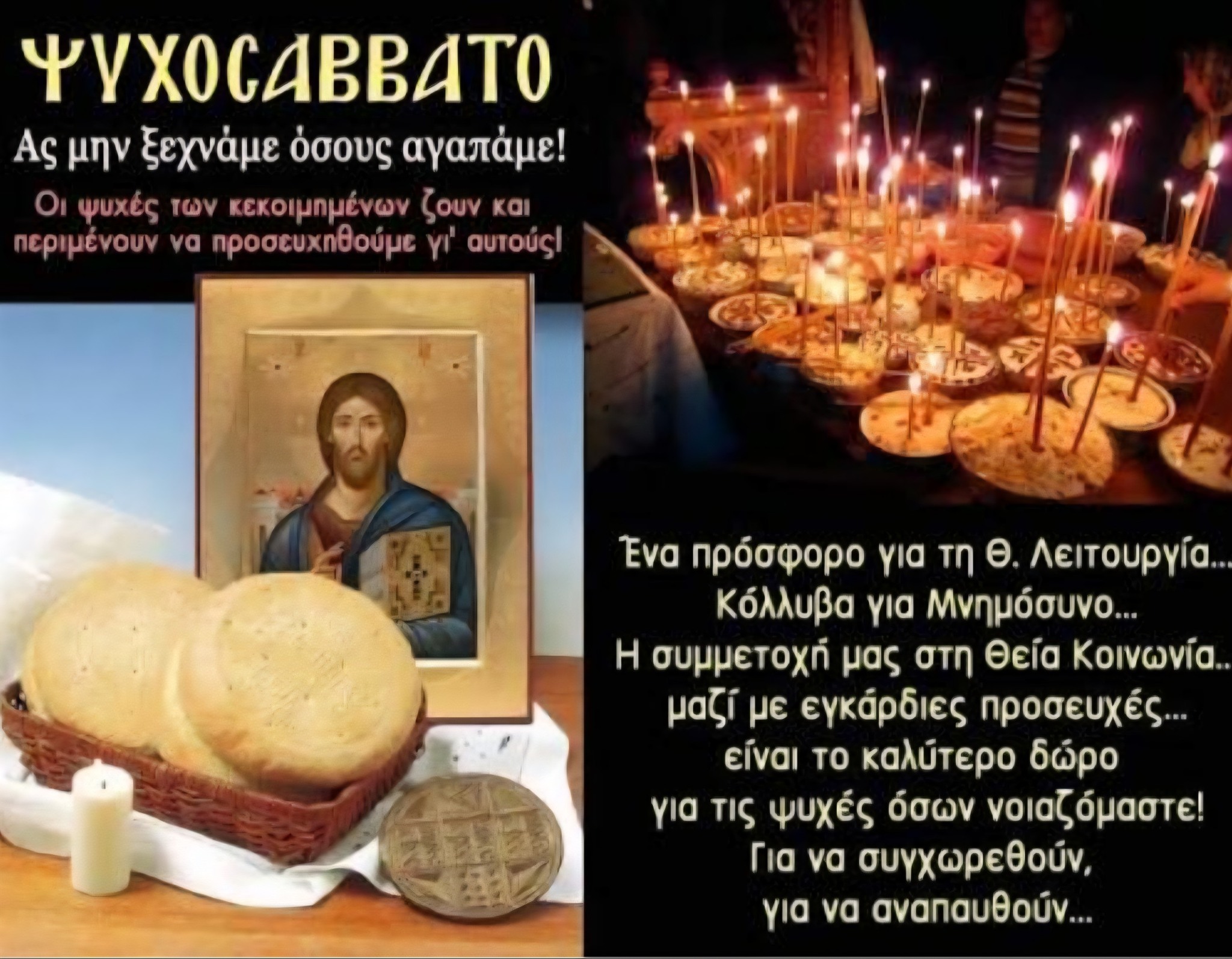 Το Σάββατο 25 Οκτωβρίου 2025 η Αγία μας Εκκλησία τιμά το Ψυχοσάββατο του Αγίου Δημητρίου, ημέρα αφιερωμένη στη μνήμη και την ανάπαυση όλων των κεκοιμημένων αδελφών μας.