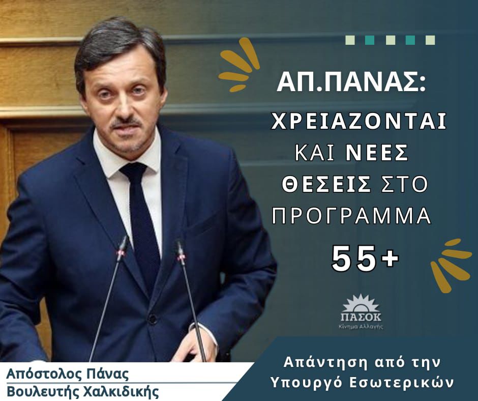 Απάντηση έλαβε ο Βουλευτής ΠΑΣΟΚ-Κινήματος Αλλαγής Χαλκιδικής στην υπ’ αρ. πρωτ. 4568/8-4-2025 κοινοβουλευτικής ερώτησης σχετικά με την ενίσχυση του προγράμματος απασχόλησης ανέργων ηλικίας 55 ετών και άνω από Υπουργείο Εργασίας.