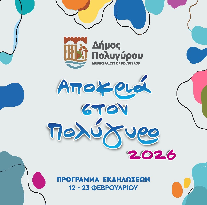 - 17:30 – 1ο Δημοτικό Σχολείο Πολυγύρου: Αποκριάτικη γιορτή από τον Σύλλογο Γονέων & Κηδεμόνων στο χώρο του σχολείου.