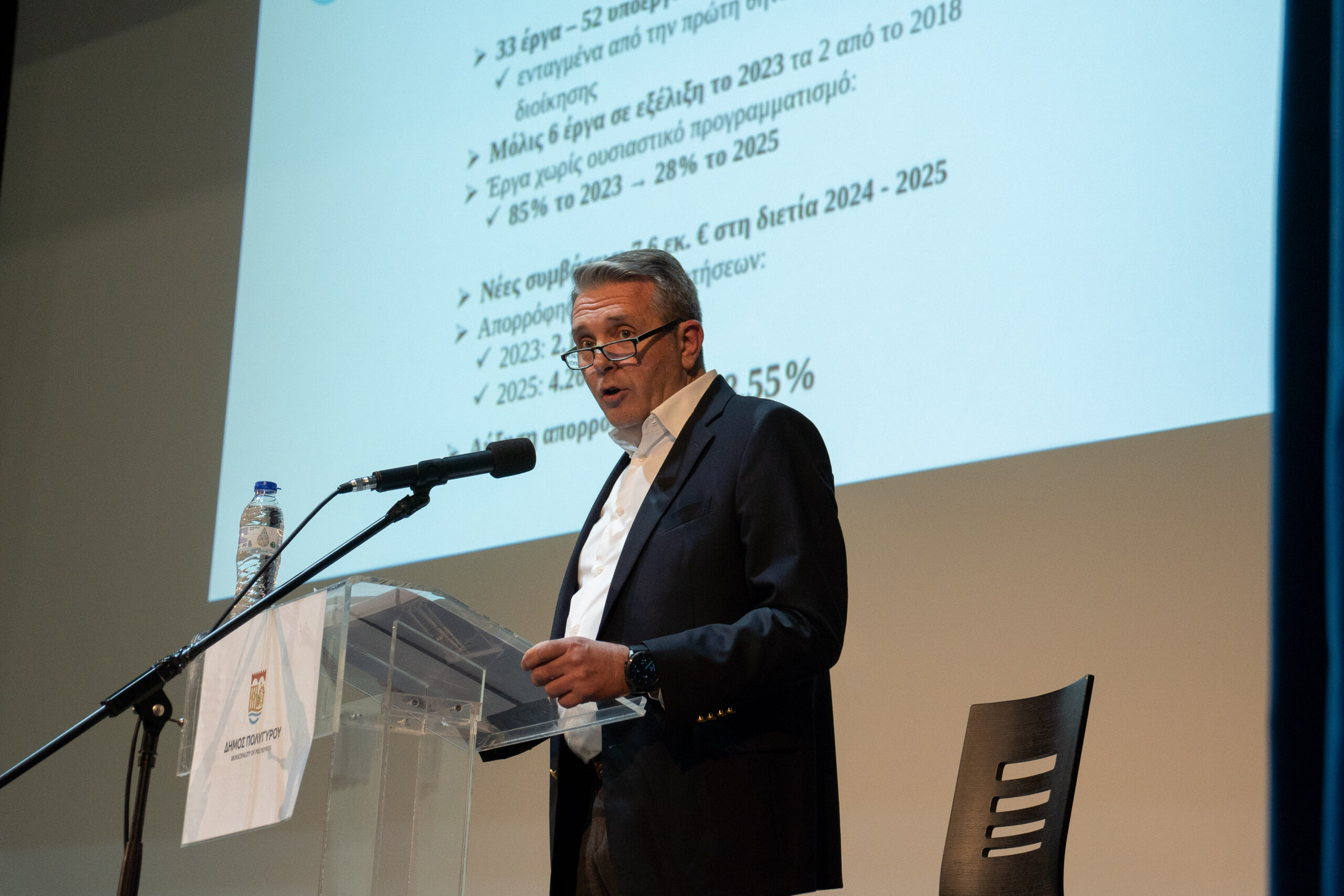 Με σεβασμό στον θεσμό και αίσθημα ευθύνης απέναντι στους δημότες, ο Δήμαρχος Πολυγύρου, Γιώργος Εμμανουήλ, παρουσίασε τα πεπραγμένα των δύο πρώτων χρόνων της θητείας του, αναφερόμενος αναλυτικά στην κατάσταση που παρέλαβε η παρούσα διοίκηση, στο έργο που υλοποιήθηκε έως σήμερα και στους βασικούς στόχους για το 2026. Την εκδήλωση ενημέρωσης παρακολούθησαν με αμείωτο ενδιαφέρον πολίτες του Δήμου στο Δημοτικό Θέατρο Πολυγύρου.