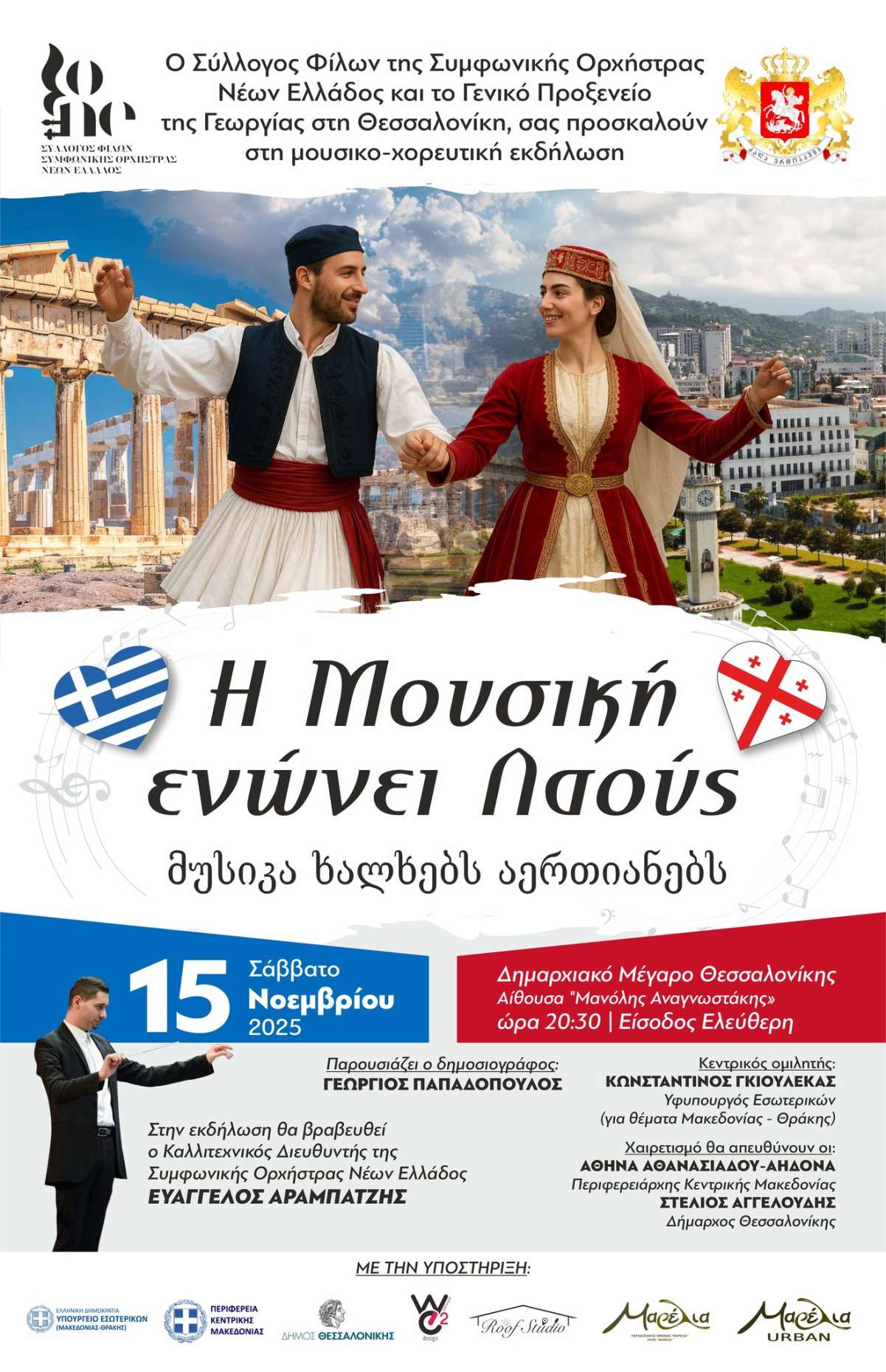 Η πόλη της Θεσσαλονίκης τιμά τον Καλλιτεχνικό Διευθυντή της Συμφωνικής Ορχήστρας Νέων Ελλάδος (ΣΟΝΕ) Ευάγγελο Αραμπατζή. Σάββατο 15 Νοεμβρίου 2025 στις 20:30, στο Δημαρχιακό Μέγαρο Θεσσαλονίκης στην Αίθουσα ”ΜΑΝΟΛΗΣ ΑΝΑΓΝΩΣΤΑΚΗΣ” – ΕΙΣΟΔΟΣ ΕΛΕΥΘΕΡΗ Με το Χρυσό Μετάλλιο της Συμφωνικής Ορχήστρας … Read More