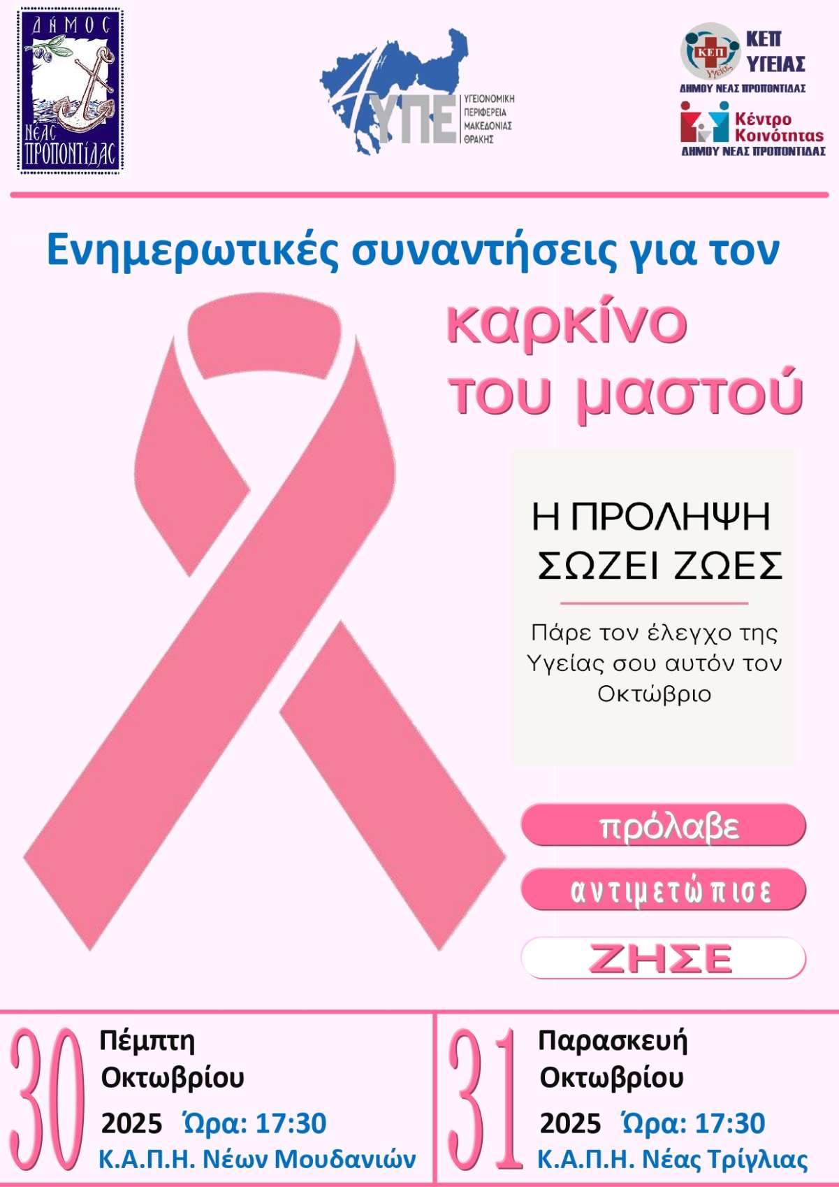 Ενημερωτικές Συναντήσεις για τον Καρκίνο του Μαστού